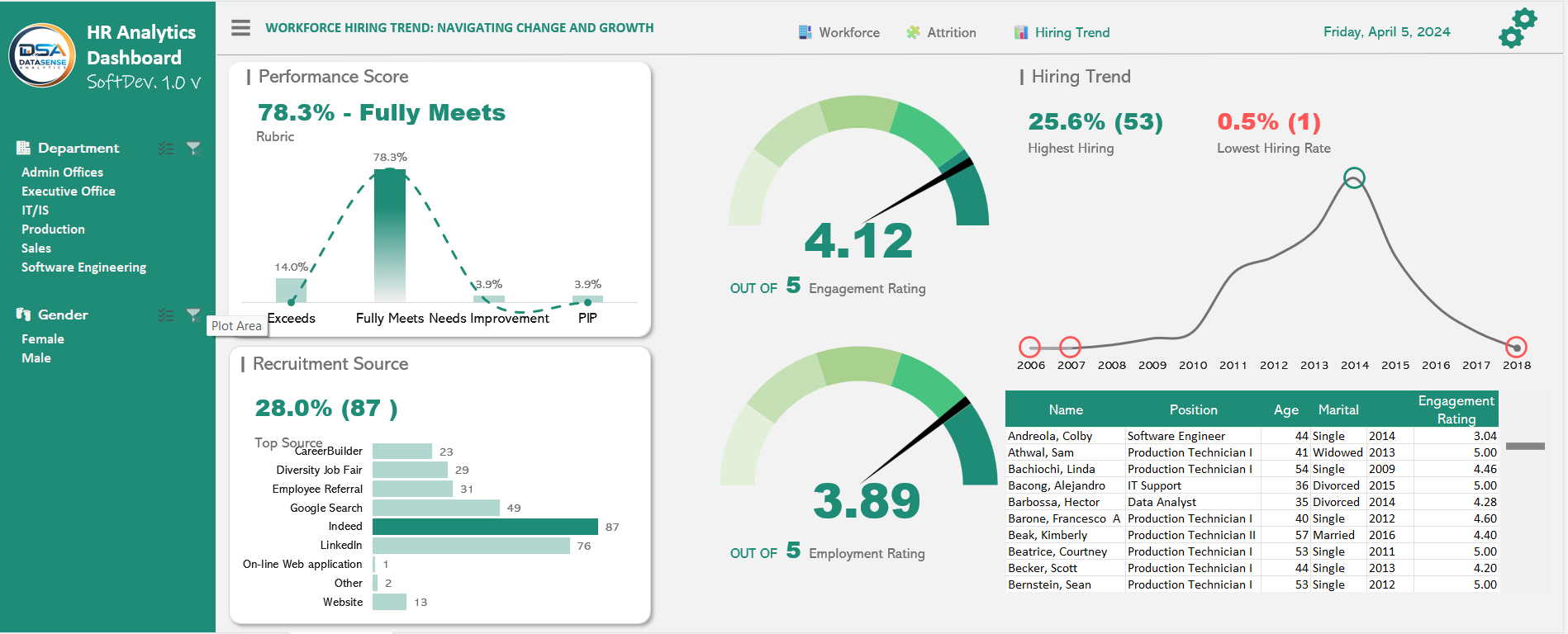 - Historical Hiring Trends: Longitudinal analysis of workforce growth and changes over a span of years to identify patterns and organizational evolution.
