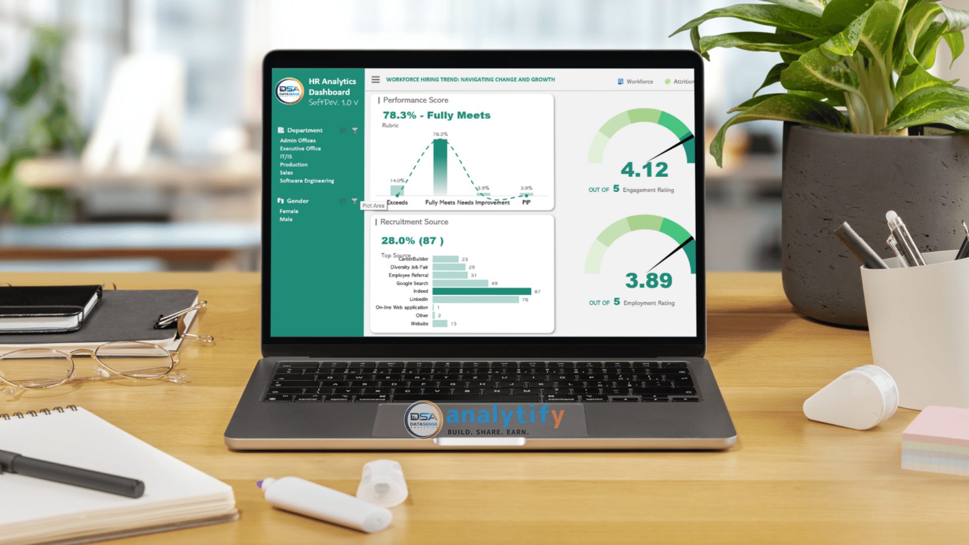 - Recruitment Channel Insights: Visualization of talent acquisition sources, including platforms like LinkedIn and Diversity Job Fairs, to highlight hiring strategies.